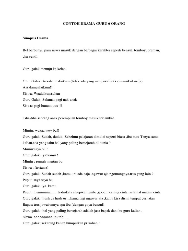 Drama 7 orang dengan tema pendidikan di sebuah sekolah yang sederhana terdiri dari 6 orang murid dan 1 orang guru. 7 contoh teks naskah drama pendek persahabatan 5 6 7 orang. Contoh naskah drama cerita rakyat 7 orang idexamcom . Mereka tak begitu paham apa itu sekolah, . Semangat dari sahabat tokoh :