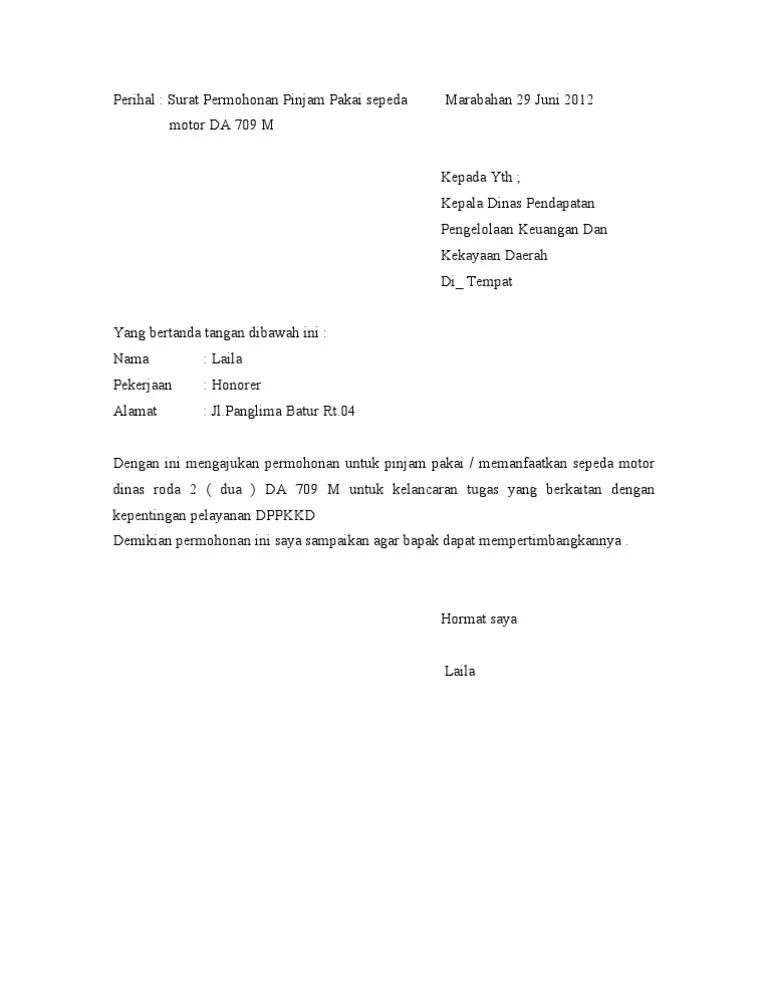 Jika dinyatakan memenuhi syarat, permohonan peminjaman mobil . 15 menit disposisi dari ketua stain mobil operasional untuk mahasiswa adalah mobil carry warna biru dengan. View surat peminjaman kendaraan.docx from computer s 1 at stmik bandung. Demikian surat permohonan ini kami buat. Contoh surat pengantar kepala desa cucupan.
