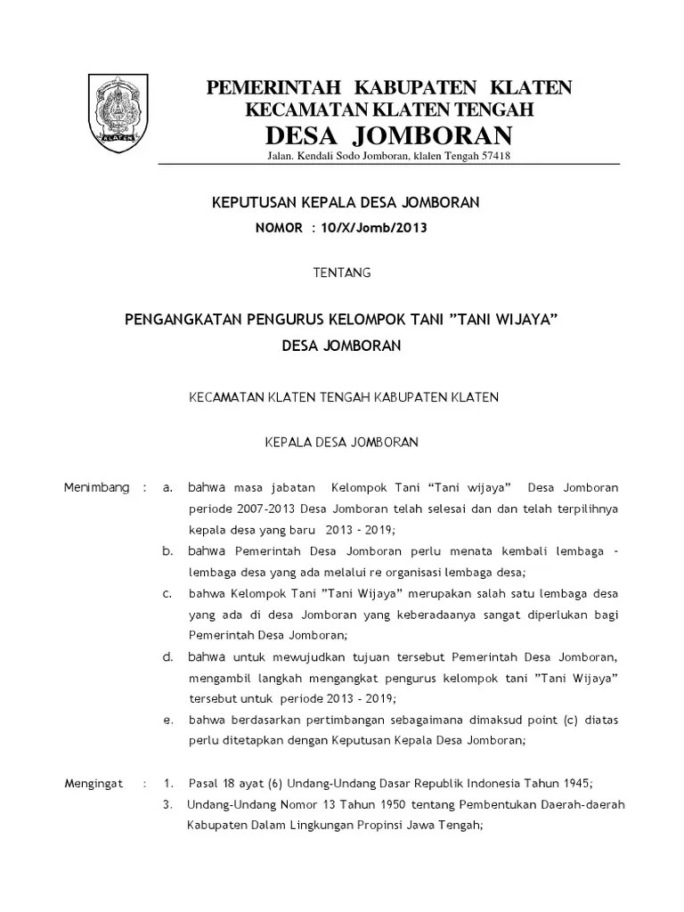 Susunan pengurus himpunan petani pemakai air (hippa). Sk kader dasa wisma desa kumitir, sk kades, 2020. Lampiran surat keputusan kepala desa pandean. 1995 tentang pembentukan dan pembinaan hippa propinsi daerah tingkat i. Adapun contoh perdes, perkades, permakades, dan kepkades dapat diperoleh manakala desa .